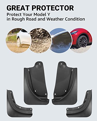 Tesla Model S Y and 3 Heavy-Duty Mud Flaps - Set of 4 in Black